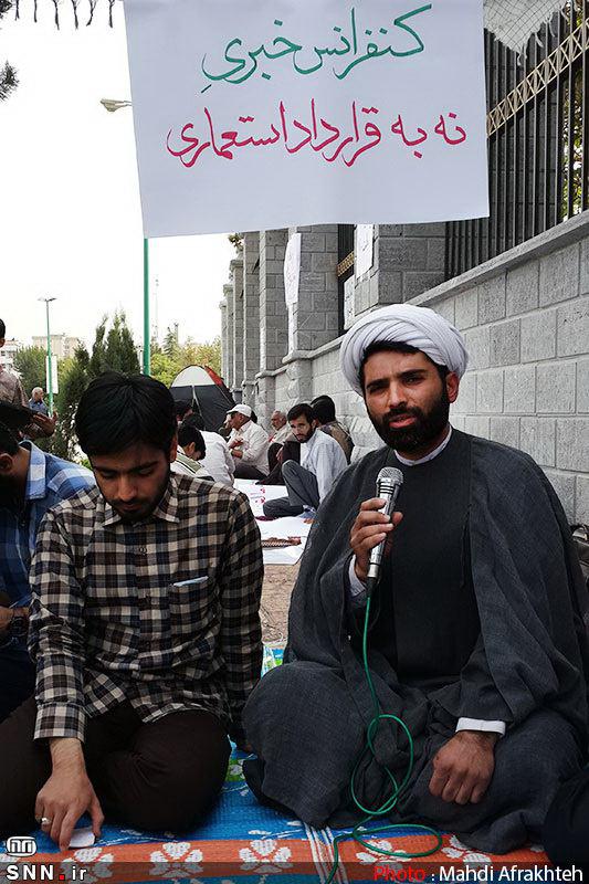 طلبه روحانی و فرزند شهید ساکن قم به همراه خانواده خود با در دست داشتن نوشته هایی مبنی بر اینکه «آمریکا قابل اعتماد نیست» و «ایران زیر بار زور نخواهد رفت»، در مقابل مجلس شورای اسلامی در اقدامی معنادار سه شبانه روز را در خیابان بهارستان سپری می کند.