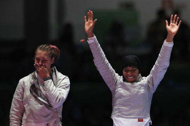 رقابت‌های شمشیربازی بازی‌های المپیک ریو در بخش سابر تیمی در بخش زنان با برگزاری دیدارهای رده‌بندی و فینال به پایان رسید که در مسابقه رده‌بندی تیم آمریکا که ابتهاج محمد نیز در آن حضور داشت توانست با برتری برابر ایتالیا به مدال برنز دست یابد و به این ترتیب این ورزشکار محجبه مسلمان به اولین ورزشکار محجبه تاریخ آمریکا در المپیک تبدیل شد که توانسته در بخش تیمی روی سکوی توزیع مدال برود.