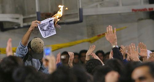 همچنین در میان سخنرانی رییس‌جمهور یک نفر از حاضران عکس وی‌ را به آتش کشید و احمدی‌نژاد نیز در واکنش به این اقدام گفت: «این افتخار من است که در راه تعالی کشورم بسوزم.»
