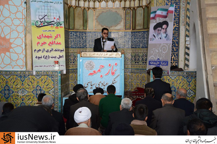 به گزارش «خبرنامه دانشجویان ایران»، محمد امین عارفنیا، دبیر عقیدتی سیاسی انجمن اسلامی دانشجویان دانشگاه سمنان امروز جمعه هفدهم آذرماه به مناسبت «روز دانشجو» پیش از خطبههای نماز جمعه شهر سمنان در جمع نمازگزاران این شهر به سخنرانی پرداخت.