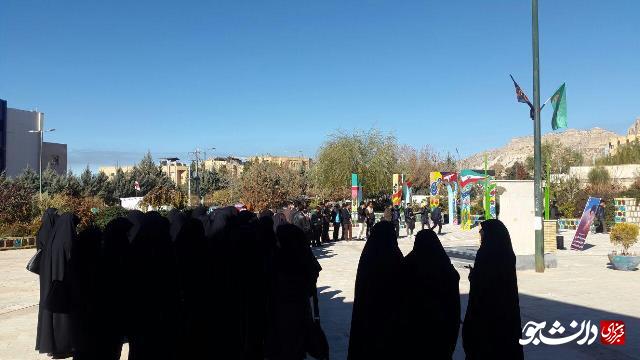 در این برنامه که با همکاری بسیج دانشجویی و تشکل جامعه اسلامی دانشجویان دانشگاه ایلام برگزار شد شعار «مرگ بر آمریکا و مرگ بر صهیونیسم» و همچنین قرائت بیانیه مشترک جامعه اسلامی و بسیج دانشجویی دانشگاه ایلام قرائت شد.