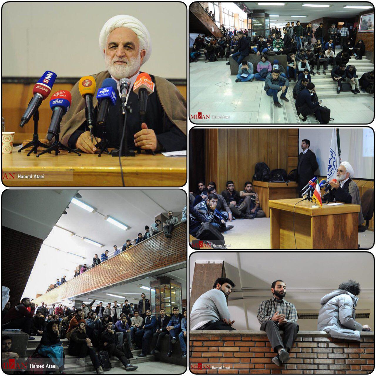 پیش از سخنرانی اژهای، نمایندگان دانشجویان به نوبت پشت تریبون قرار گرفته و در مقابل سخنگوی قوه قضاییه به سخنرانی پرداختند؛ اما نکته قابل توجه در این مراسم، ازدحام جمعیت دانشجویان در سالن جابربن حیان دانشکده شیمی دانشگاه صنعتی شریف و همچنین انتقادات تند و تیز نمایندگان دانشجویان در حضور معاون اول قوه قضاییه بود.