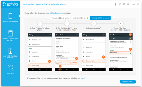 مرحله دوم: نرم‌افزار از شما می‌خواهد تا USB Debugging در اسمارت‌فون اندرویدی را فعال کنید.