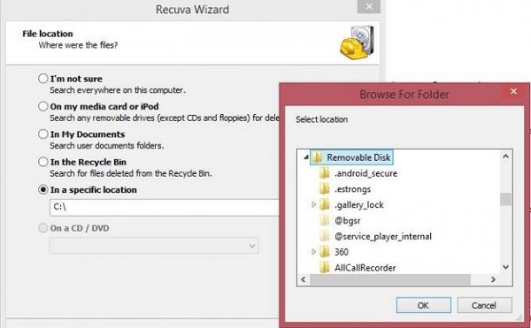مرحله سوم: حالا باید درایو خارجی خود که مربوط به‌دستگاه اندرویدی می‌شود را مشخص کنید و در ادامه OK را کلیک کنید.