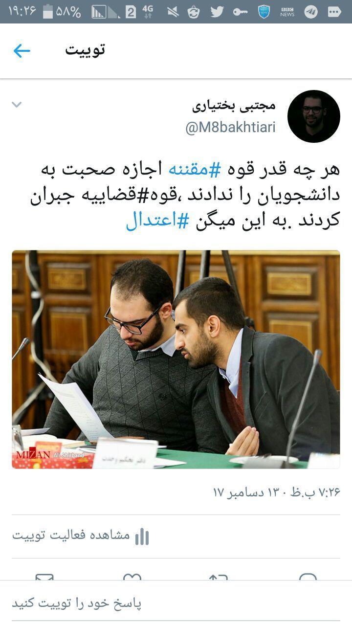 مجتبی بختیاری افزود: یکی از نکات مثبت این جلسه وحدت دانشجویان در اتحادیههای مختلف بود که ضمن حفظ روحیه مطالبهگری در پرسشهای خود به موضوعات پیوستهای اشاره میکردند که نشاندهنده بیداری و آگاهی دانشجویان از مشکلات کشور و همدلی آنان به مسئولین برای پیشرفت کشور است.