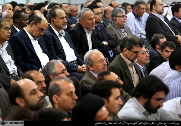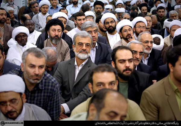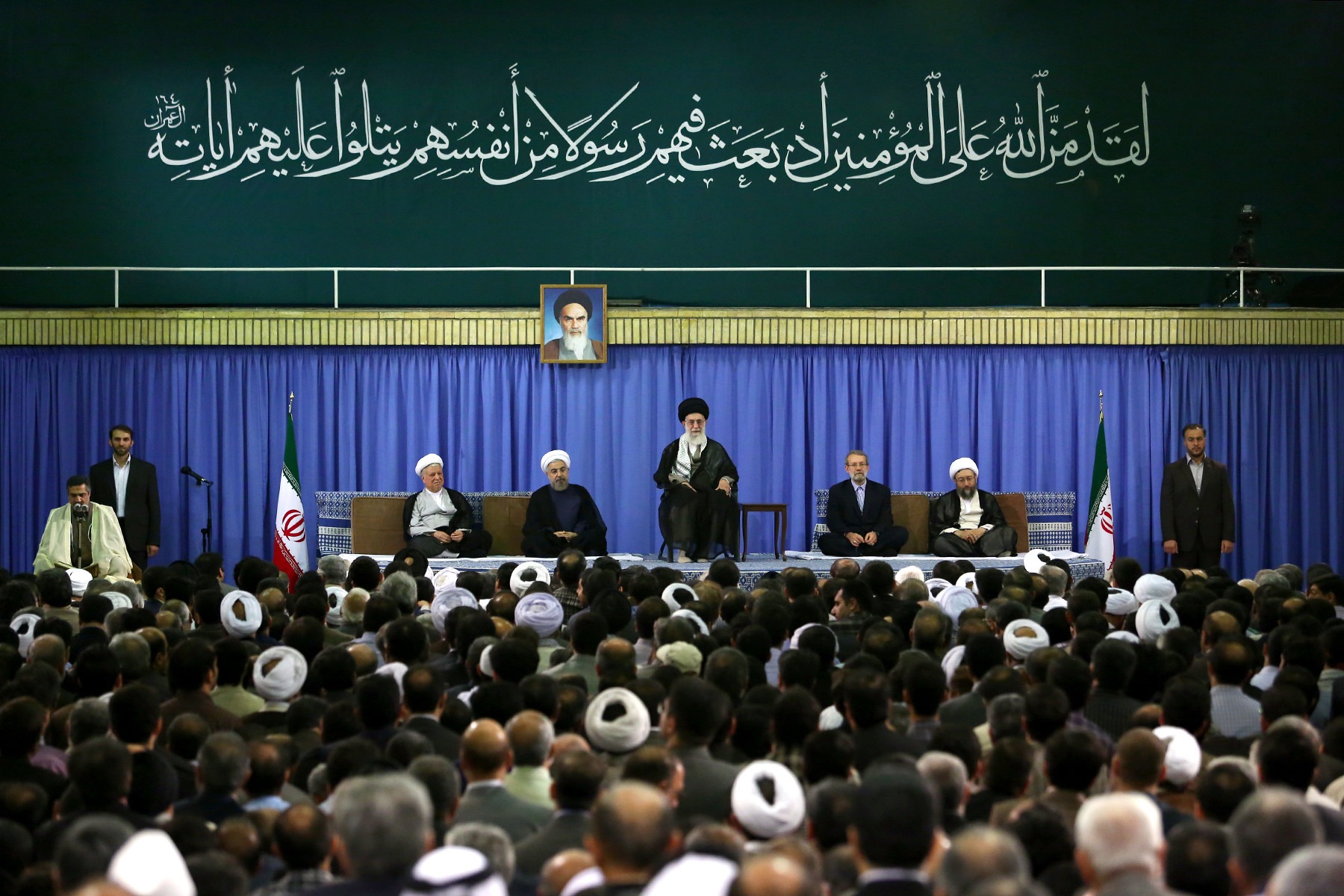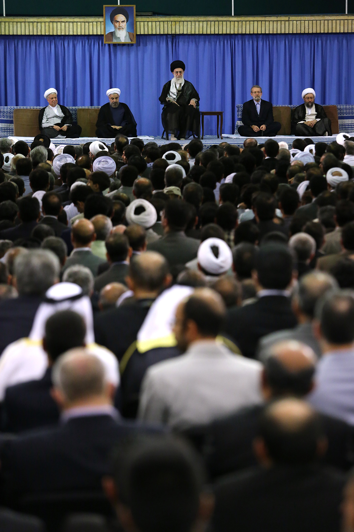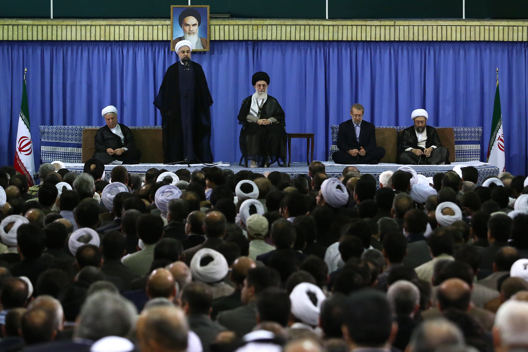 پیش از سخنان رهبر معظم انقلاب، حجت الاسلام والمسلمین روحانی رئیس جمهور، با تبریک عید بزرگ مبعث، بعثت را رستاخیز بزرگ تاریخ و نعمتی برای استفاده درست از عقل براساس وحی الهی خواند و گفت: پیامبر اکرم صلّی الله علیه و آله وسلّم با مهربانی و اخلاق عظیم دلها را مجذوب کرد و دانش، آزادگی و معنویت را برای بشریت به ارمغان آورد.