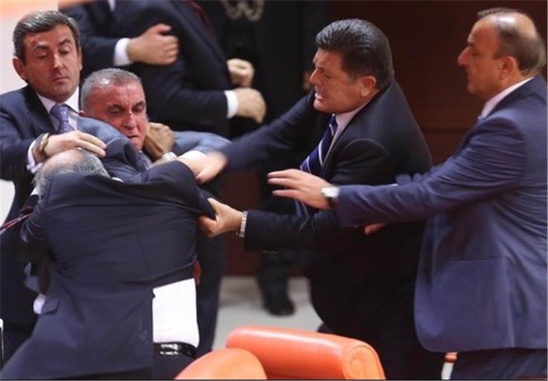 به گزارش باشگاه خبرنگاران، پارلمان ترکیه امروز دوشنبه بار دیگر صحنه زد و خورد و کتککاری نمایندگان این کشور بود که به نظر میرسد این درگیری به دلیل تنشها درباره سیاست دولت ترکیه در قبال ترکمانیهای عراق بوده است.