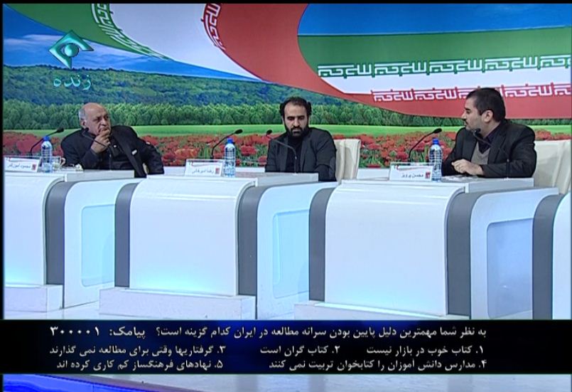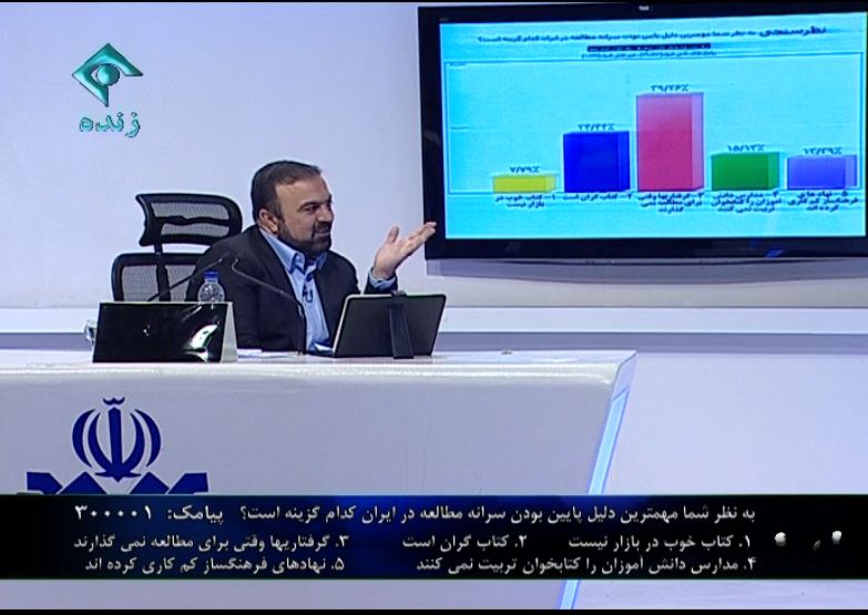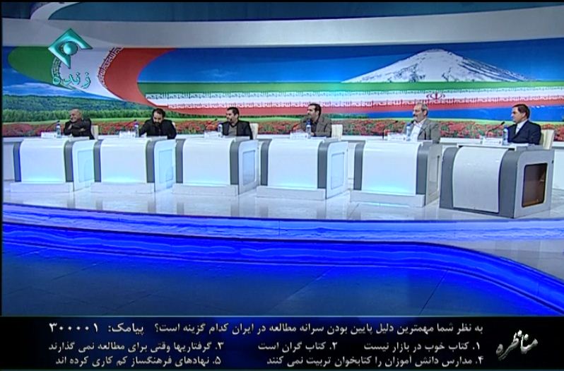 در ابتدای پنجاه و ششمین برنامه مناظره شبکه یک سیما که به موضوع سرانه مطالعه اختصاص یافته بود مهمانان برنامه به این سوال پاسخ دادند که مهمترین دلایل پایین بودن سرانه مطالعه در کشور چیست؟