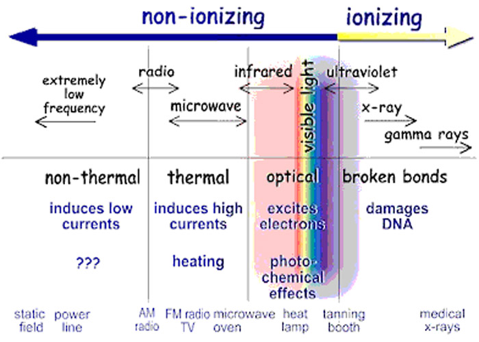 تابش غیریونیزه محدودهای از اشعهها با فرکانس بسیار کم تا اشعههای مایکروویو و مادون قرمز را در بر میگیرد. آژانس حفاظت محیط زیست میگوید: