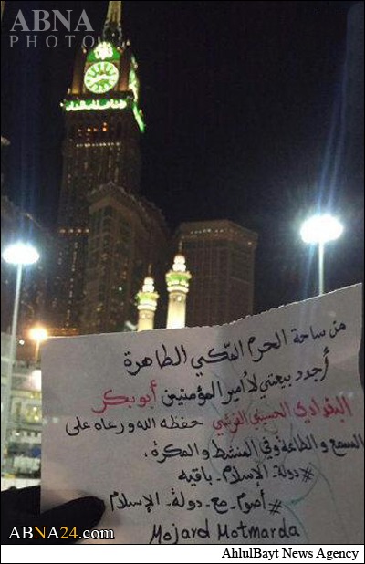 همچنین عکسی نیز در مسجد الحرام به همین شیوه و بیعت با «ابوبکر البغدادی» خلیفه خودخوانده داعش منتشر شده است.