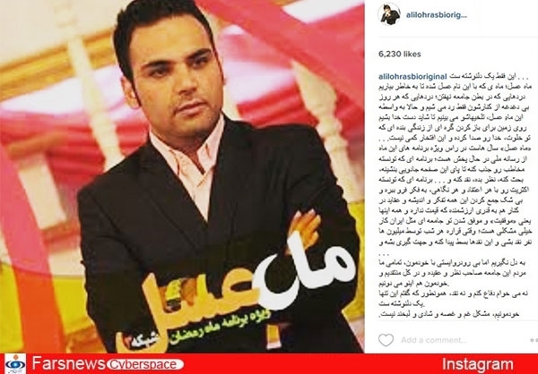 وی با انتشار تصویر زیر در صفحه شخصی اینستاگرامش نوشت: