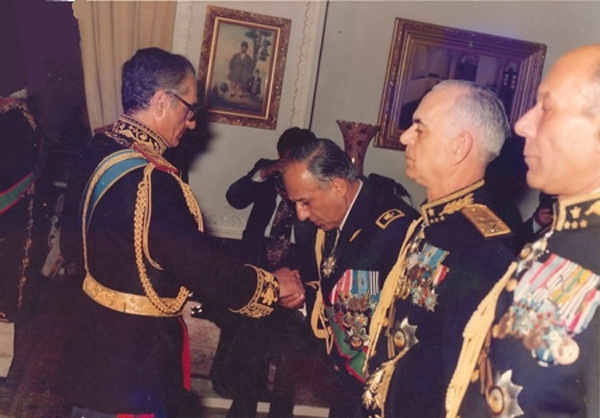 حسن طوفانیان در حال بوسیدن دست محمدرضا شاه
