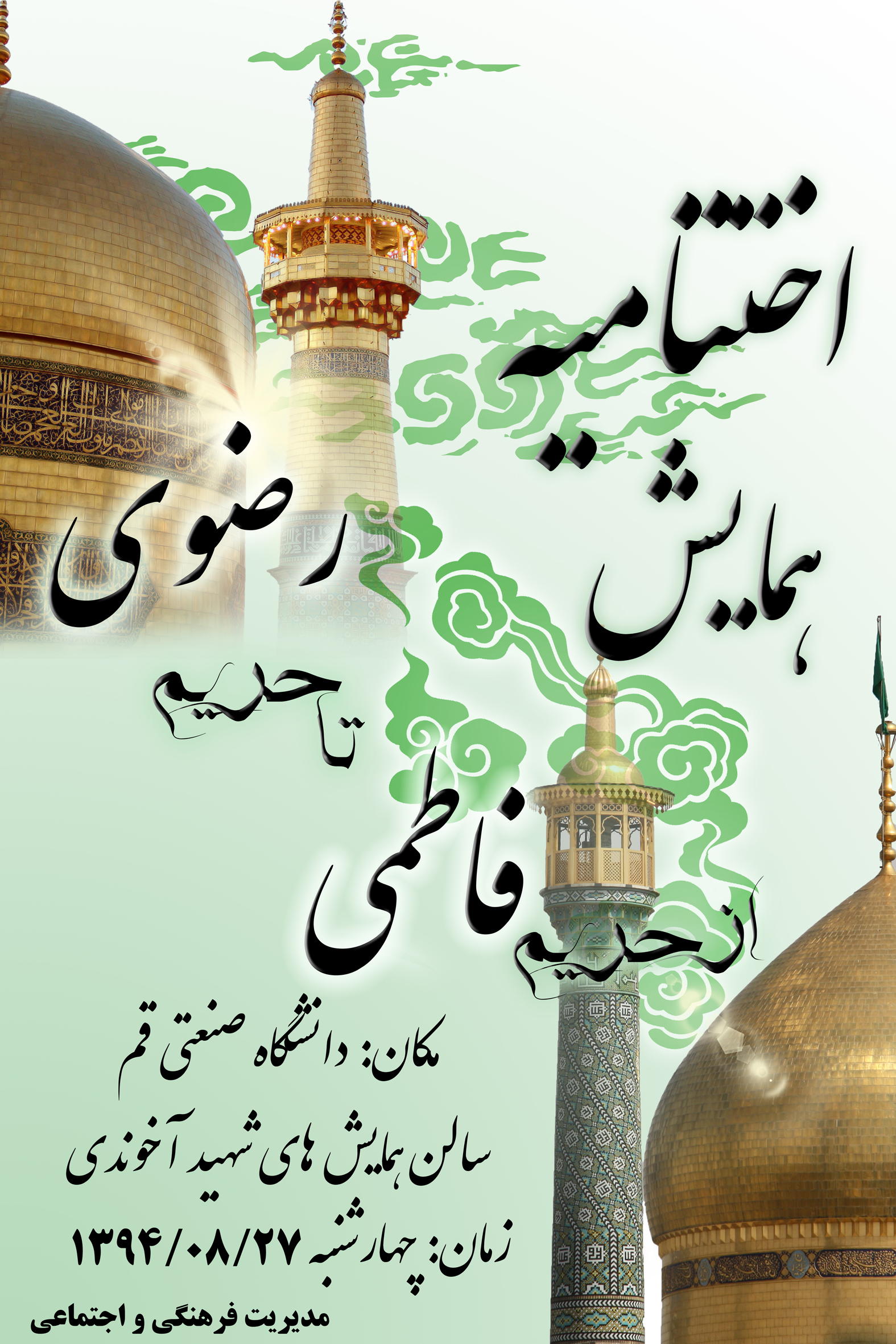 پوستر:: اختتامیه جشنواره «از حریم فاطمی تا حریم رضوی» دانشگاه صنعتی قم