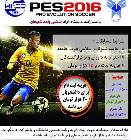 خبرنامه دانشجویان ایران: مسابقات pes 2016 در دانشگاه آزاد واحد لاهیجان برگزار خواهد شد.
