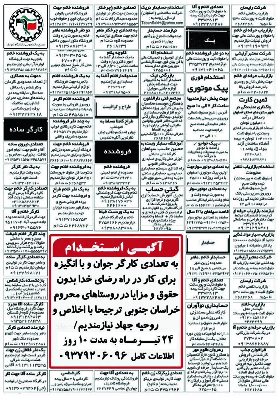 | 1 | دانشگاه صنعتی شریف/ شهید وزوایی | 24 تیر | خراسان جنوبی | فرهنگی، عمرانی، بهداشتی، اشتغال زایی |