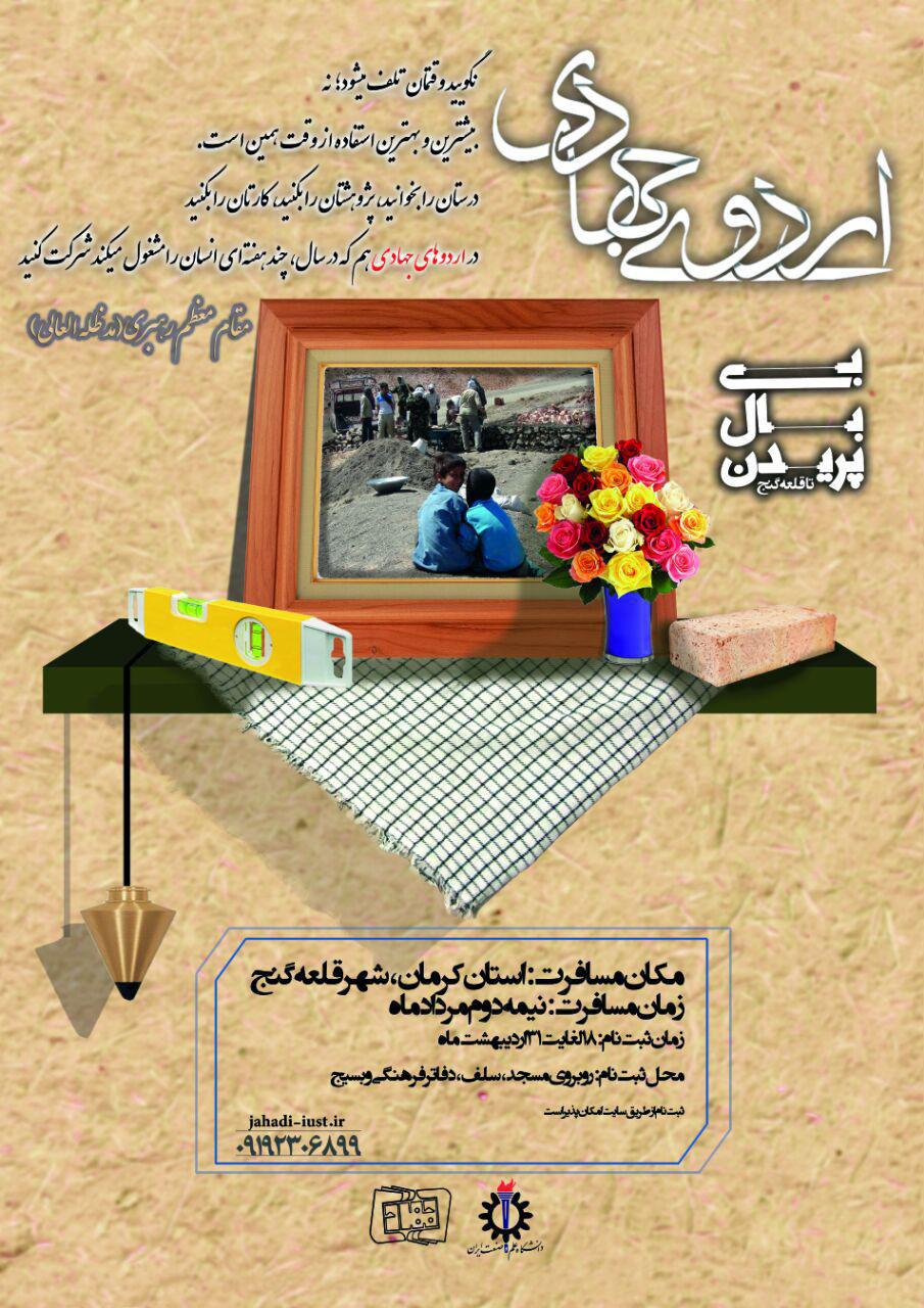 | 5 | دانشگاه علم و صنعت | نیمه دوم مرداد | کرمان/ شهرستان قلعه گنج | خدمت رسانی به مناطق محروم |