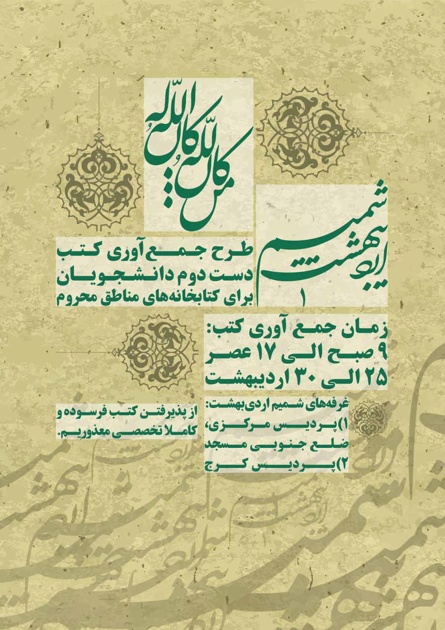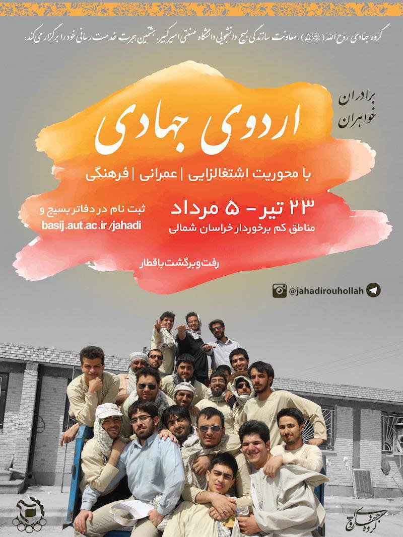 | 3 | دانشگاه صنعتی امیرکبیر/ گروه جهادی روح الله | 23 تیر | خراسان شمالی | فرهنگی، عمرانی، بهداشتی و اشتغال زایی |