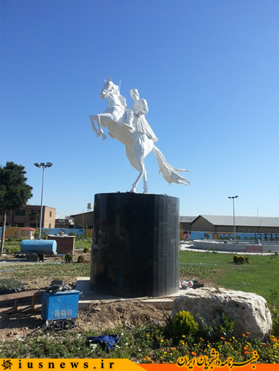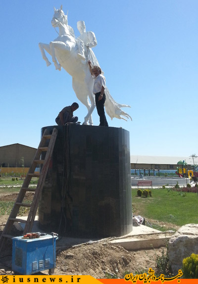 تا اینکه بر روی پایه ای به ارتفاع 2.40 متر نصب نمودیم و ارتفاع خود اسب نیز در صورت ایستاده 3.40 متر است. که لازم به ذکر است که این مجسمه را اینجانب در کارگاهم واقع در خیابان میرداماد که ارتفاع سقف آن 2.75 متر است طراحی و اجرا نمودم و تا قبل از نصب نتوانستم آنرا ایستاده ببینم تا بتوانم همه جوانب و تناسبات را از نظر بگذرانم. و خوشبختانه با تمام این مشکلات که در اجرا داشتم ولیکن تناسبات زیبا و دقیق درآمد. و در طوفانی که بهار سال 93 داشتیم نگران مجسمه شدم که نکند تحمل بار را نداشته باشد و در اثر شدت باد بشکند اما این اتفاق نیفتاد.
