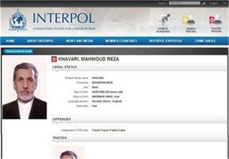 تصویر زیر، عکس محمودرضا خاوری را در وبسایت اینترپل نشان میدهد که تا چندی پیش وجود داشت