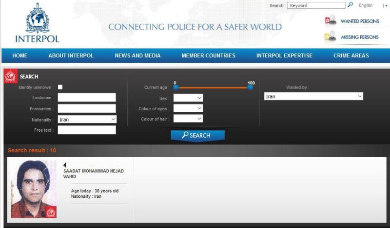 خبرنامه دانشجویان ایران: وی که تا چندی پیش عکس و نامش در فهرست متهمان تحت تعقیب دولت ایران در وبسایت اینترپل بود، از فهرست فوق حذف شده است.