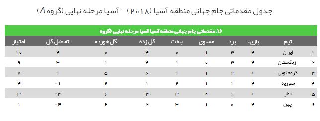 جدول هفته چهارم مقدماتی جام جهانی منطقه آسیا، گروه A و B