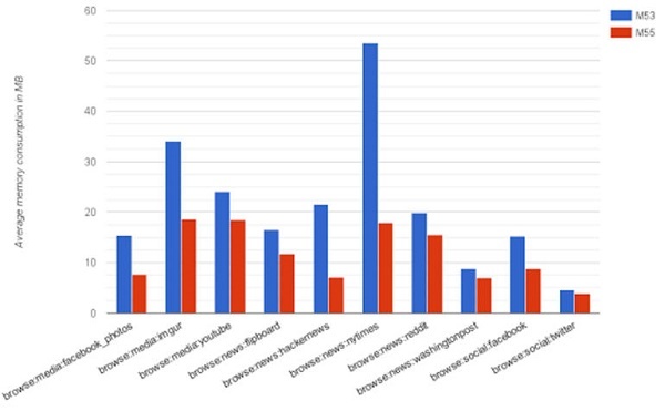 به گزارش «خبرنامه دانشجویان ایران»؛ گوگل می‌گوید که نسخه جدید کروم حافظه کمتری را می‌بلعد؛ چه حافظه پی‌سی باشد و چه حافظه تلفن همراه. بهینه‌سازی‌های وعده داده شده در نسخه کروم 55 که تا دو ماه دیگر یعنی ماه دسامبر برابر با اواسط آذر منتشر می‌شود؛ ارائه می‌شوند. هم‌چنین گفته شده که این نسخه از یک موتور جدید V8 جاوا اسکریپت بهره می‌برد.