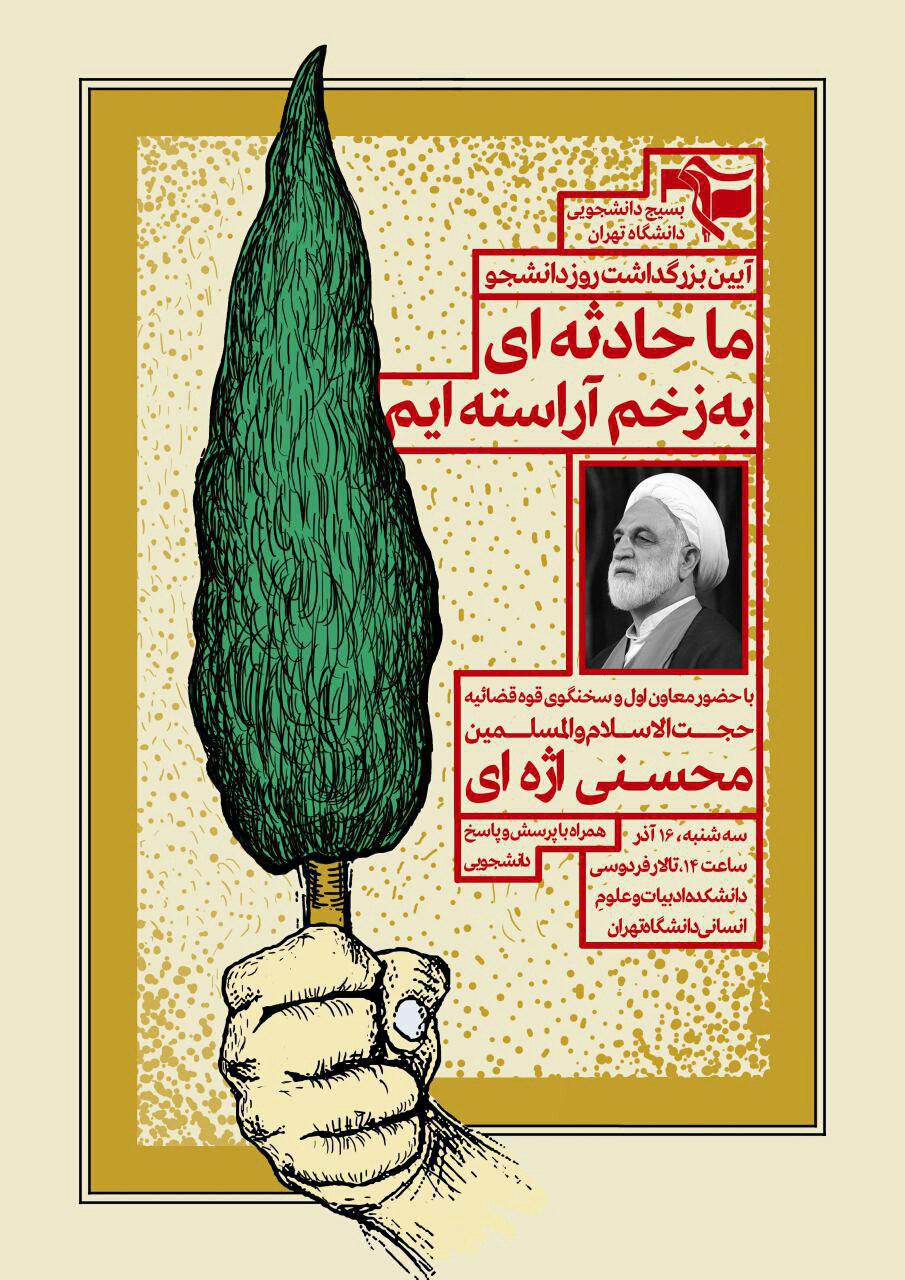 به گزارش خبرنگار «خبرنامه دانشجویان ایران»، به همت بسیج دانشجویی آیین بزرگداشت «روز دانشجو» با حضور محسنی اژه ای سخنگوی قوه قضائیه در دانشگاه تهران برگزار می گردد.