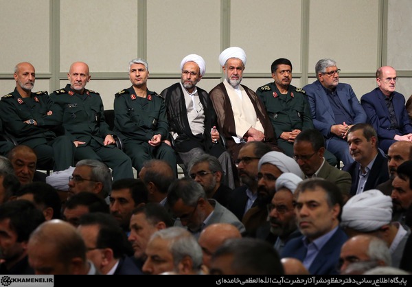 سران قوا، مسئولان و کارگزاران نظام، جمعی از مدیران ارشد دستگاههای مختلف و عناصر فعال سیاسی، اجتماعی و فرهنگی، با رهبر انقلاب اسلامی دیدار کردند.