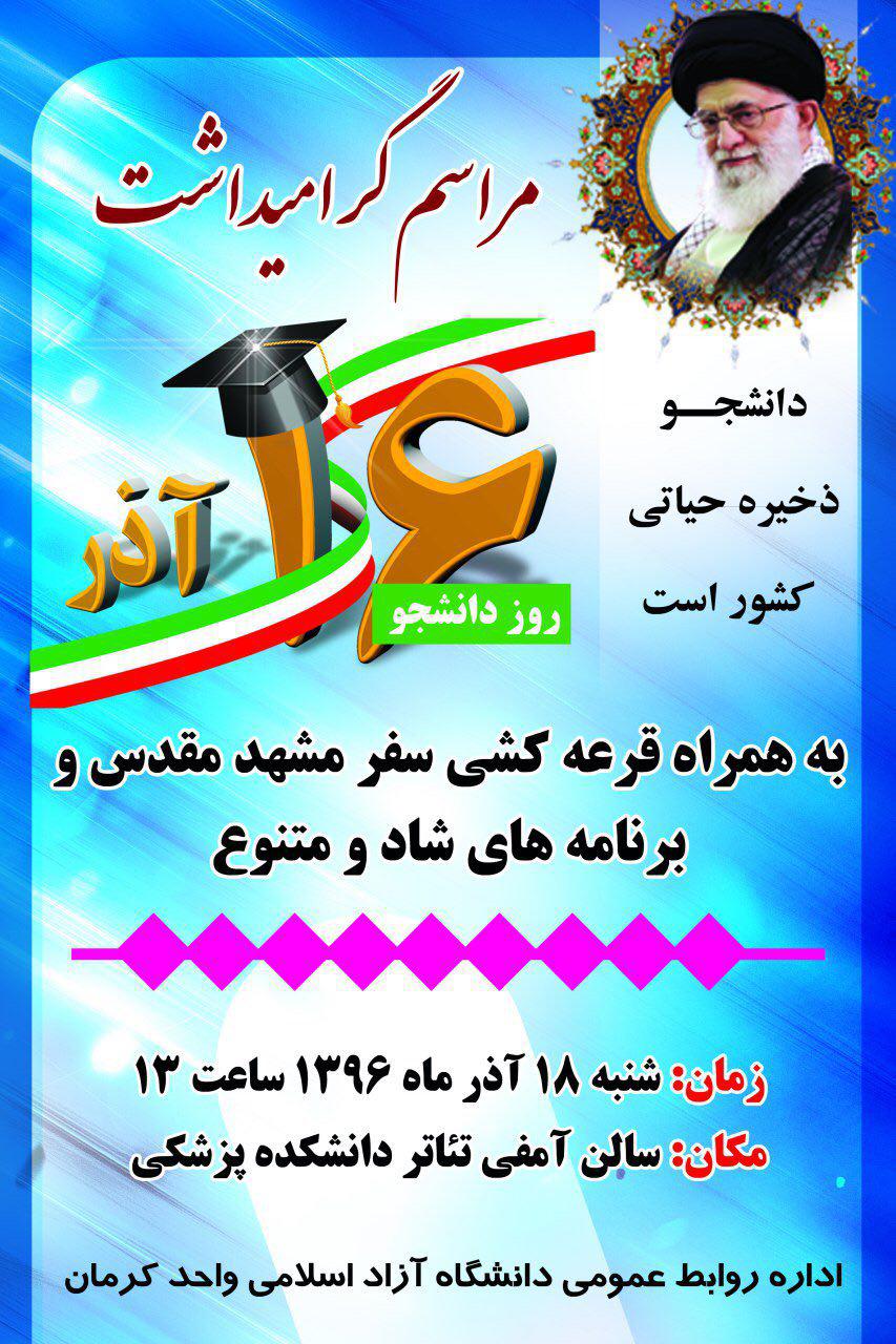 | 16 | دانشگاه آزاد کرمان | مراسم گرامیداشت روز 16 آذر | اینجا |