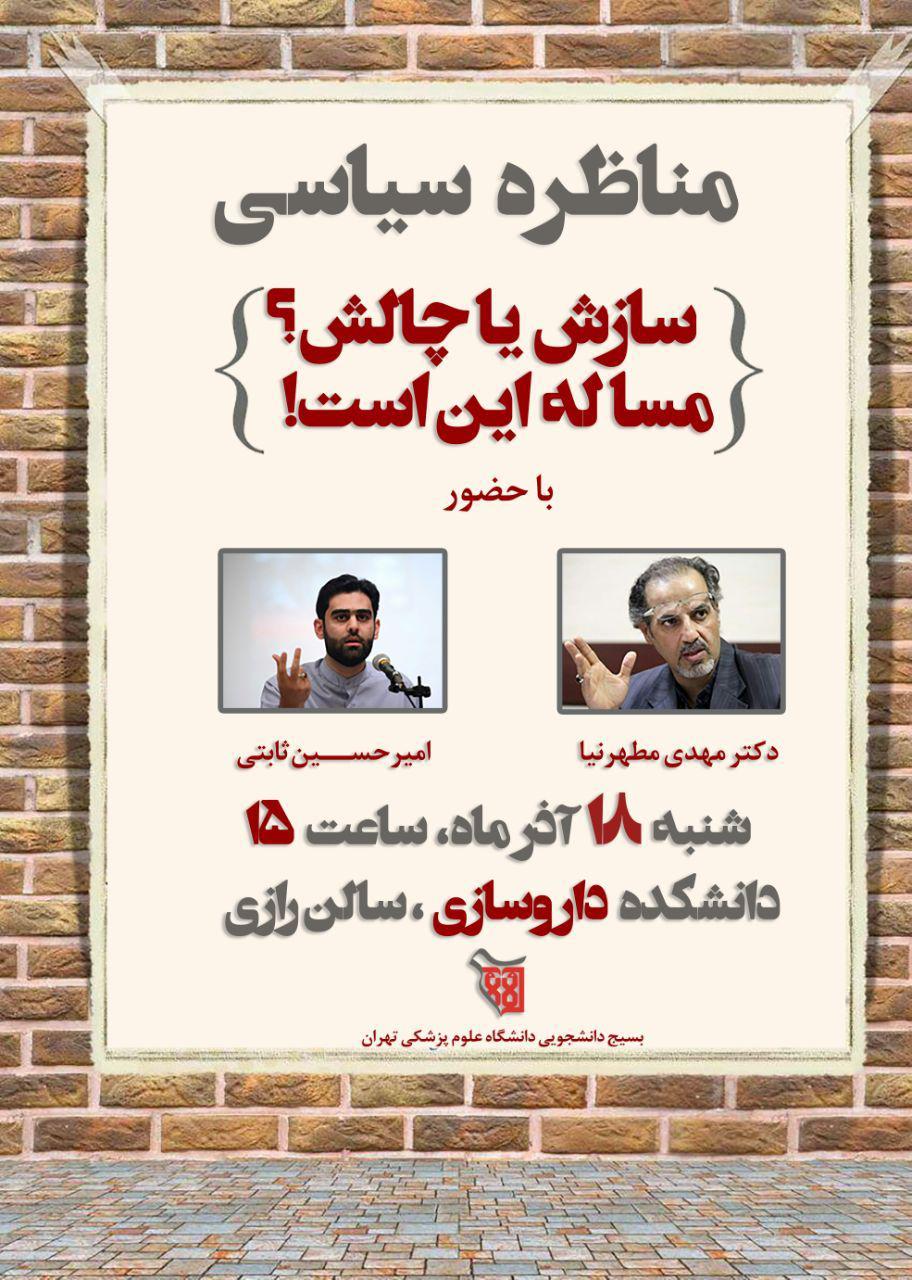 | 3 | علوم پزشکی تهران | مناظره مهدی مطهرنیا و امیرحسین ثابتی | اینجا |