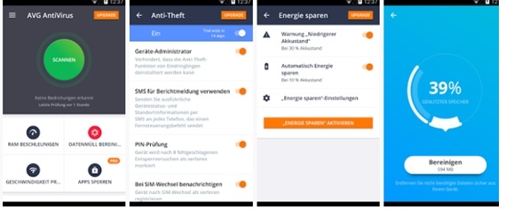AVG  یکی از بهترین ضدویروس‌هایی است که در سال جدید میلادی نه تنها از کامپیوتر شخصی بلکه از دستگاه‌‌های اندرویدی شما به خوبی می‌تواند محافظت کند. امتیاز این ضدویروس در فروشگاه گوگل پلی برابر با 4.4 بوده و به شکل رایگان در دسترس قرار دارد. این ضدویروس به خوبی برنامه‌ها، فایل‌ها و تنظیمات را به شکل بلادرنگ مورد بررسی قرار داده، قابلیت پیدا کردن و مکان‌یابی گوشی شما از طریق گوگل مپس را فعال می‌کند، به اجرای برنامه‌هایی که باعث می‌شوند کارایی دستگاه شما کم شود پایان می‌دهد، باتری دستگاه را بررسی می‌کند و کارهای بسیار دیگری را انجام می‌دهد.