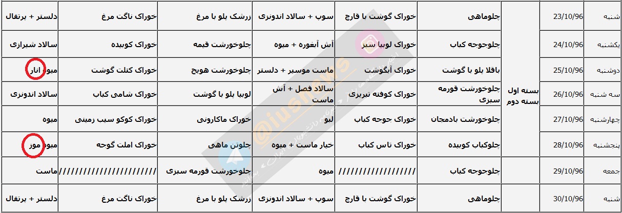 در ادامه منوی غذایی دانشگاه علم و فناوری در ایام امتحانات را مشاهده میکنید: