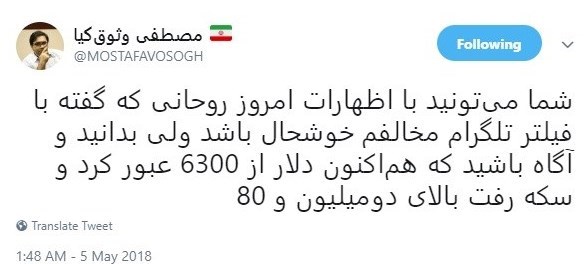 در حالی که حکم قاضی برای فیلترشدن تلگرام ۱۰ اردیبهشت ماه اعلام و اجرا شد دیشب بعد چندین روز رئیسجمهوری در پست اینستاگرامی اعلام کرد فیلتر تلگرام بهدستور دولت نبود و مورد تأیید دولت نیست!