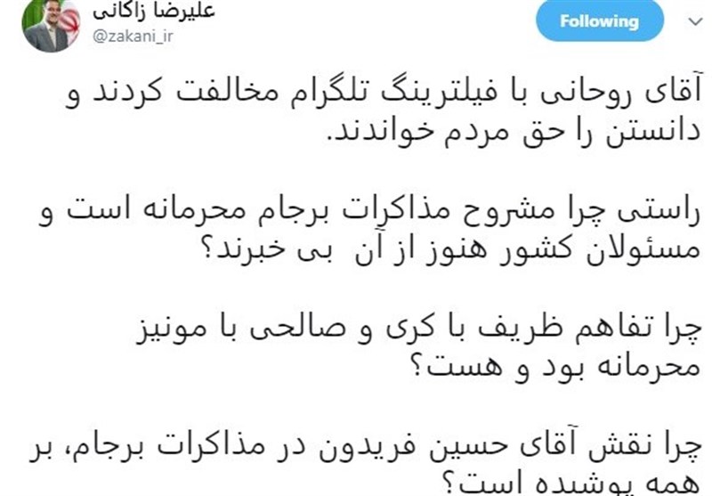 در حالی که رئیسجمهور در پست اینستاگرامی از مخالفت خود با فیلتر تلگرام صحبت کرده و شاهد مثال آن را مخالفت دولت با فیلتر تماس صوتی تلگرام اعلام کرده است؛ بررسی اظهارنظرهای مسئولان دولتی در گذشته نشان میدهد وزیر وقت ارتباطات در گذشته با تصمیم مسدود کردن تماس صوتی تلگرام موافق بوده است.