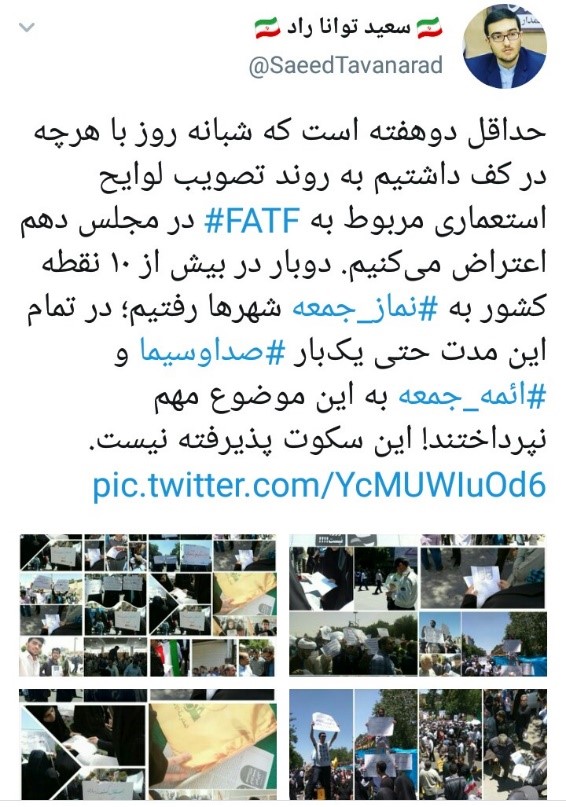 اما پس از تعلیق دوماهه بررسی و تصویب لایحه کنوانسیون مبارزه با تامین مالی تروریست (TF) برخی نمایندگان که موافق پیوستن ایران به این کنوانسیون هستند با دروغپراکنی و جوسازی رسانهای در روزهای اخیر سعی دارند تا مخالفت جریان دانشجویی و مردمی در کل کشور را را یک امر سیاسی که از سوی گروه سیاسی خاصی هدایت میشود، جلوه دهند. عدهای که تا پیش از این خود را قدرت بلامنازع در تصویب لوایح برجام گونه میدانستند با دیدن پویایی جنبش دانشجویان شروع به تخریب این جریان کردند. مصاحبههایی که روزنامه اعتماد در شماره روز سه شنبه خود با برخی نمایندگان منتشر کرده است نشان دهنده اثرگذاری صریح اعتراضات دانشجویی است و انتساب آن به اتفاقات شهر مشهد و همچنین اعتراضات سال گذشته حربه دیگری است که برای به حاشیهراندن اعتراضات شکل گرفته پیرامون این لوایح استعماری است.
