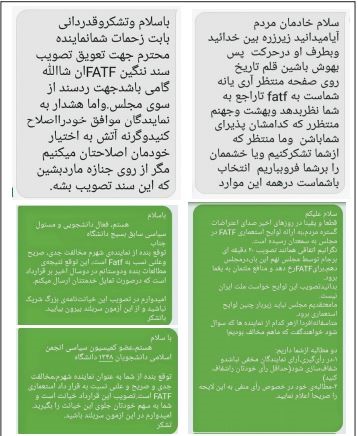 دانشجویان بازهم از پای ننشستند و تمام تلاش را برای ارتباط گرفتن با نمایندگان خود در مجلس شورای اسلامی به کار بستند عدم توجه بسیاری از نمایندگان مجلس به مطالباتشان سبب شد تا در ابتکاری بدیع از طریق پیامک صدای خود را به گوش نمایندگانشان برسانند؛ این موج فضای مجازی و بالأخص توییتر و اینستاگرام را نیز پر کرد و دو هشتک FATF, NO2FATF در این دو شبکه بهصورت گسترده پخش شد.
