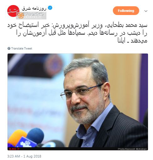 سید محمد بطحایی، وزیر آموزشوپرورش: خبر استیضاح خود را دیشب در رسانهها دیدم. سمپادها مثل قبل آزمونشان را میدهند.