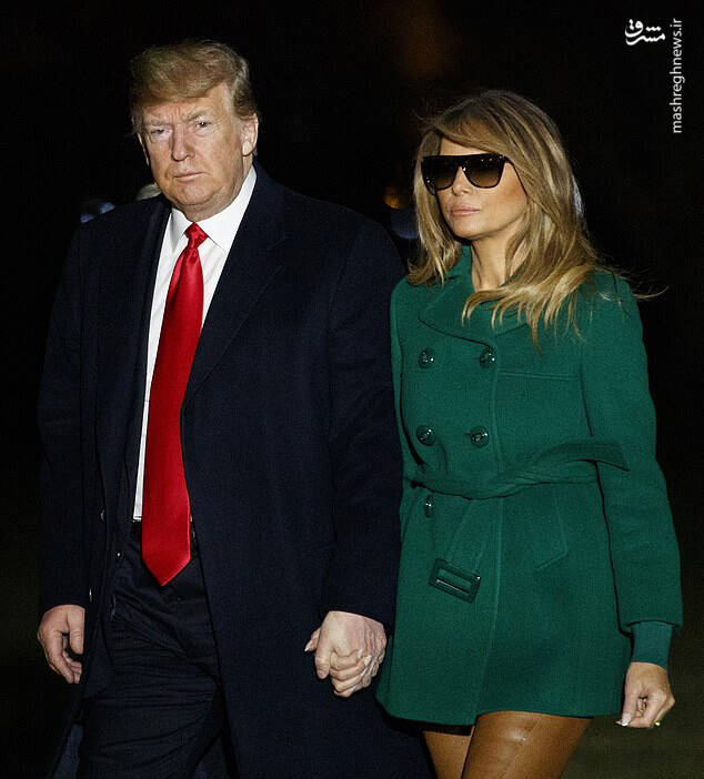 تصاویر ملانیا در زمان بازگشت شب هنگام وی و ترامپ از سفر عراق و آلمان به کاخ سفید و درحالی که ملانیا عینک آفتابی زده بود باز هم سوژه کاربران مجازی شد!