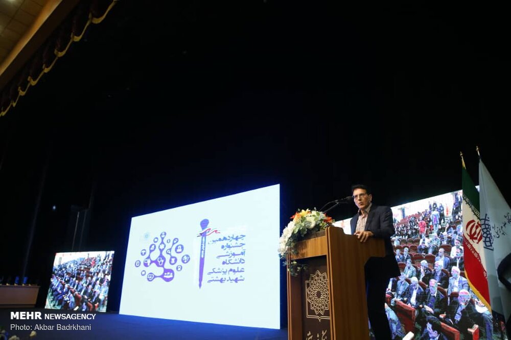 چهاردهمین جشنواره آموزشی دانشگاه علوم پزشکی شهید بهشتی صبح سه شنبه با حضور رئیس کمیسیون بهداشت و درمان مجلس، معاون وزیر بهداشت در تالار امام خمینی(ره) دانشگاه علوم پزشکی شهید بهشتی برگزار شد.