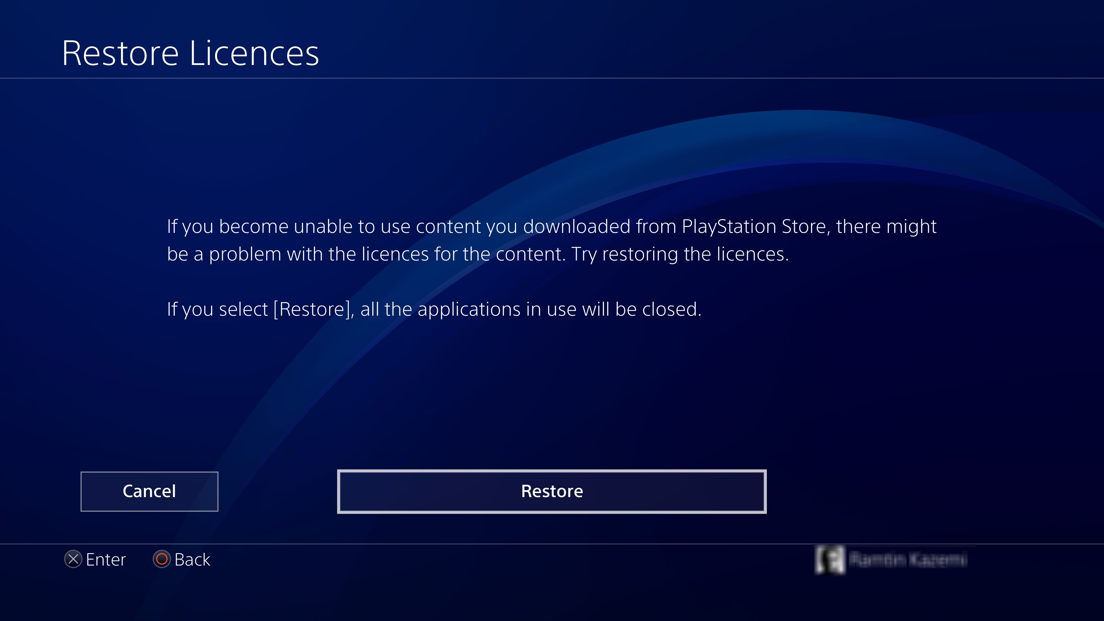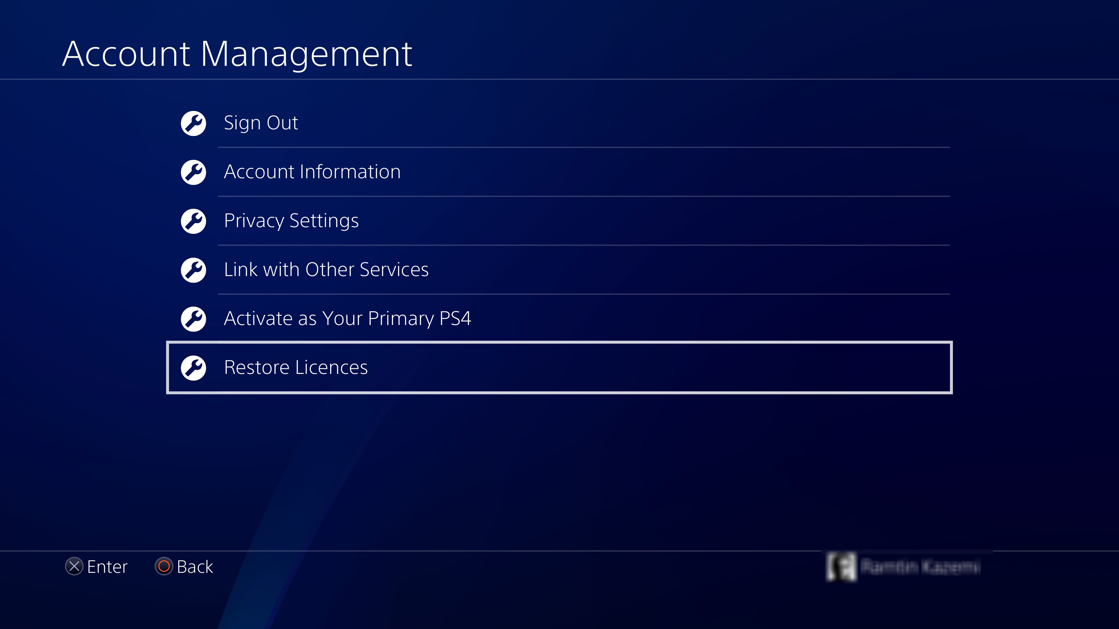 - وارد Account Management شوید و مطمئن شوید که در PSN ساین این هستید. سپس گزینه Restore Licenses را انتخاب کنید.