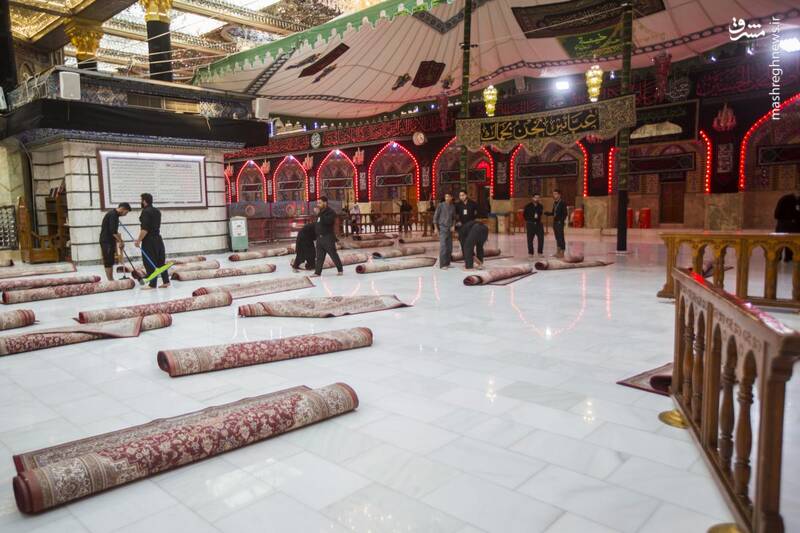 خادمان حرم مطهر حضرت ابالفضل(ع) صبح امروز صحن مطهر حرم را غبارروبی کردند.
