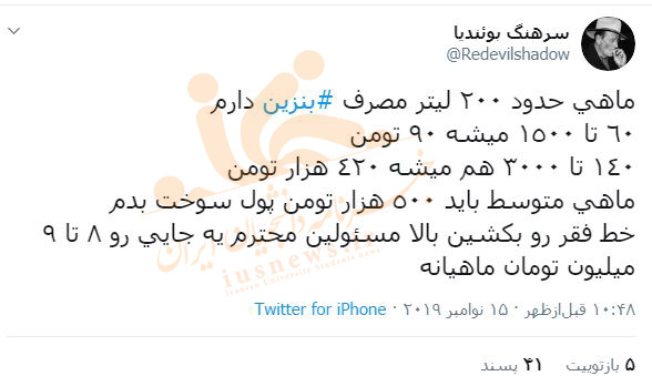 اما پس از دقایقی از اطلاعیه شرکت ملی پخش فرآوردههای نفتی ایران و آغاز قیمت های جدید بنزین می شد حدس زد این موضوع یکی از ترندهای داغ شبکه های اجتماعی قرار گیرد و این تغییر با موافقان و مخالفان همراه شود، آنچه که در ادامه آمده گزیده ای از این واکنش ها است.