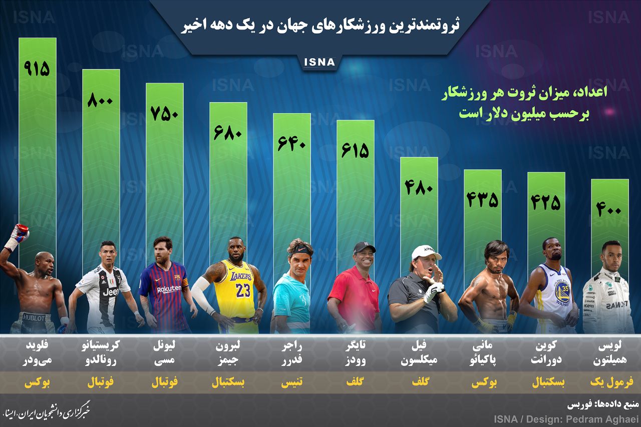 در ادامه اینفوگرافی درباره ثروتمندترین ورزشکاران جهان را مشاهده مینمایید.