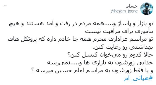 البته چند توئیت را که در حمایت از برگزاری مراسم عزاداری محرم نوشته شده است را به عنوان حسن ختام این گزارش مرور می کنیم: