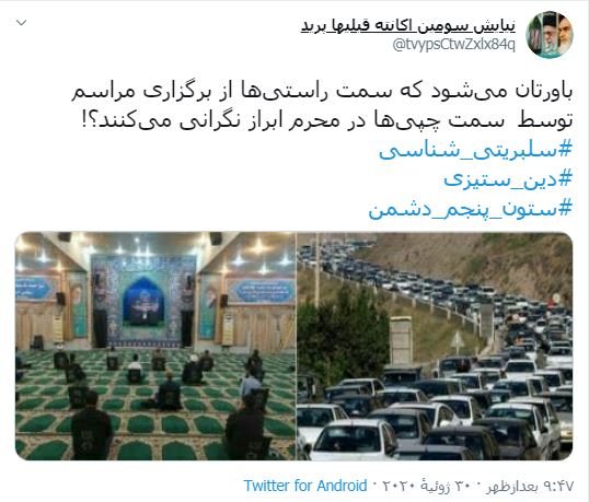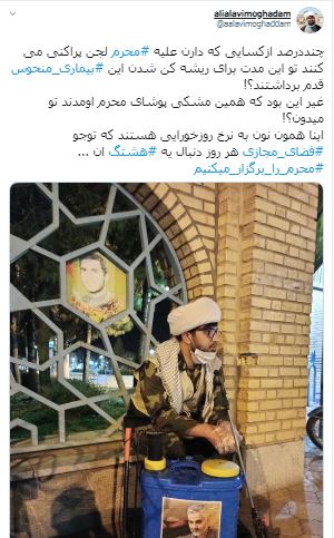 این در حالی است که فردی دیگر با ارتباط دادن اعتراضات آبان ماه 98 به موضوع محرم! و با تاکید بر اینکه مردم عادی در مراسم شهادت ابا عبدالله الحسین(ع) شرکت می کنند، مردم جامعه را احمق خطاب می کند!