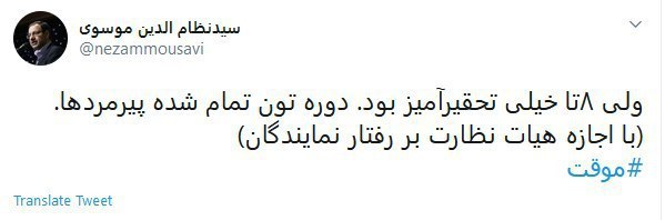 سیدنظامالدین موسوی، نماینده مردم تهران، ری، شمیرانات، پردیس و اسلامشهر در مجلس یازدهم در صفحه شخصی خود به بارسلونا کنایه زد. موسوی در ادامه توییت خود نوشت «با کسب اجازه از هیئت نظارت بر رفتار نمایندگان!»