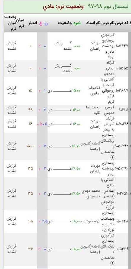 آنها می گویند که در سال تحصیلی ۹۹-۹۸ واحدهای کارآموزی پرستاری بزرگسالان سالمندان ۲ (۲ واحد)، پرستاری و بهداشت و روان پرستاری بیماریهای روان (۲ واحد)، پرستاری بزرگسالان سالمندان ۳ (۲ واحد) پرستاری کودک سالم (۰.۵ واحد)، پرستاری سلامت و جامعه / فرد و خانواده / محیط (۲ واحد) هنوز نگذرانده اند.