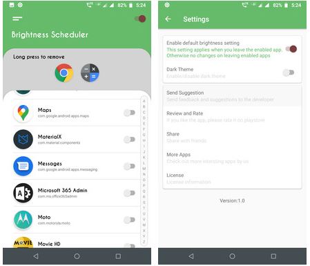 Brightness Control در واقع نسخه رایگان اپلیکیشن Brightness Manager از یوگش داما، توسعهدهنده مستقل هندوستانی است. کاری که این اپ انجام میدهد، کار سادهای است: به شما اجازه میدهد که تنظیمات روشنایی را «برای هر اپلیکیشن» به طور مجزا زمانبندی کرده و میزان روشنایی را تعیین کنید.