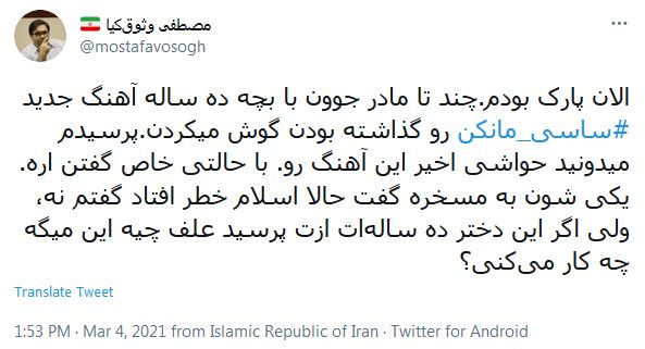واکنش یک کاربر توئیتر به ویدئو جدید ساسی مانکن