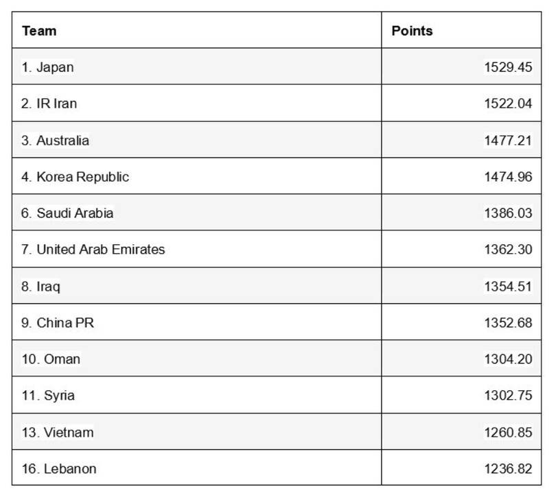 بر اساس آخرین رده بندی فیفا، تیم ملی کشورمان با ۱۵۲۲.۰۴ امتیاز در رده دوم قرار دارد و به این ترتیب طبق پیش بینی ها در سید اول جای دارد.